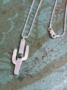 The cactus necklace is a part of The Ranch Collection: Heirloom quality, whimsical jewelry inspired by nature’s indefinable beauty and the timeless, organic raw aesthetics of the world around us. Cactus charm is approx 1.5 inch in size, is hand cut, and features a gorgeous 5mm turquoise stone. Charm hangs on a 20 inch sterling silver